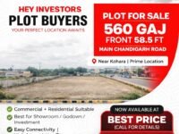 560 gaj prime plot available near Kohara on Main Chandigarh Road with 58.5 ft front. Suitable for commercial or residential use, ideal for showroom, godown, or high-return investment. Excellent road connectivity and strong appreciation potential make it a smart purchase option.